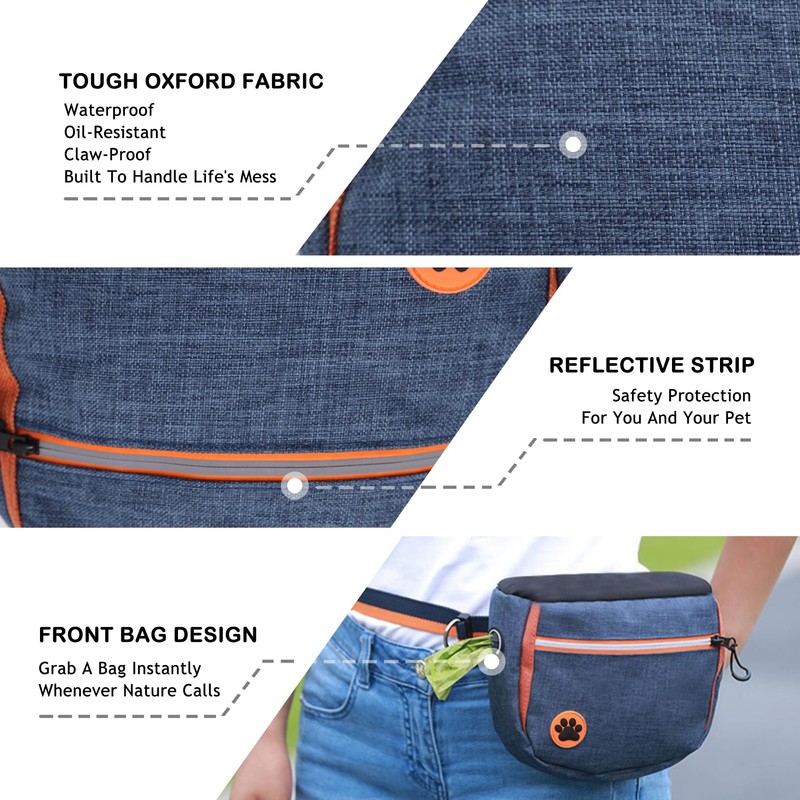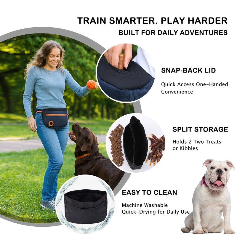 - Durable Stylish Training Gear Made from water-resistant fabric with sleek design – practical treat bag that looks great indoors and outdoors