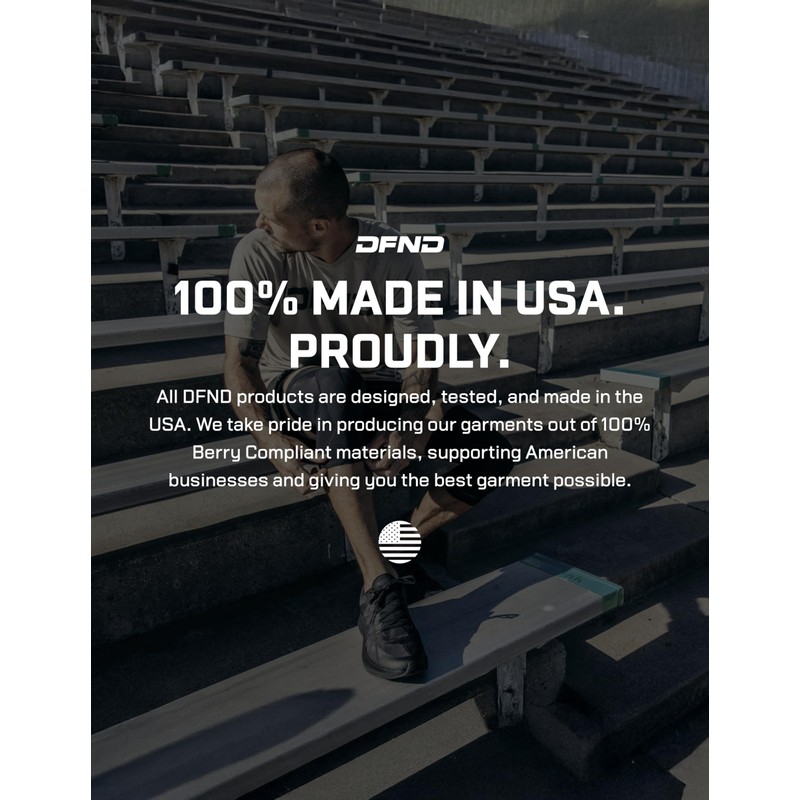 • MADE IN USA & USED BY US MILITARY: All DFND products are Designed, Tested, and Made in the USA and are used by all major branches of the US Military as well as College and Pro Sports Teams. We take pride in producing our garments out of 100% Berry Compliant materials, supporting American businesses and giving you the best garment possible. We strive to support local businesses that provide safe working conditions, good paying jobs, and a cleaner environment.