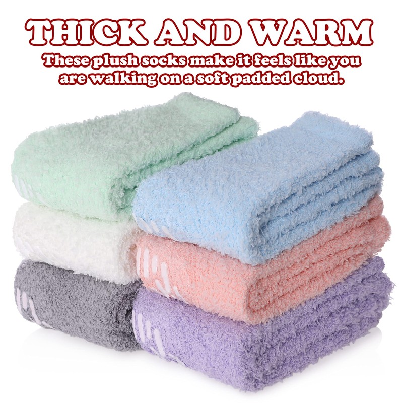 - NON-SLIP GRIPPERS DESINGN: Silicon rubber grips on soles of socks prevent slips and falls on smooth floors.The fluffy cozy socks are also the perfect companion when you're practicing yoga or working out.