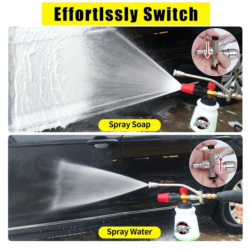 - APPLICATION: Ideal for motorcycle and car washing, cleaning roofs, driveways, and siding, as well as washing floors and windows, it proves to be the ultimate product for detailing trucks or SUVs. Experience a new dimension of cleanliness with our innovative foam blaster dual-connector accessory.