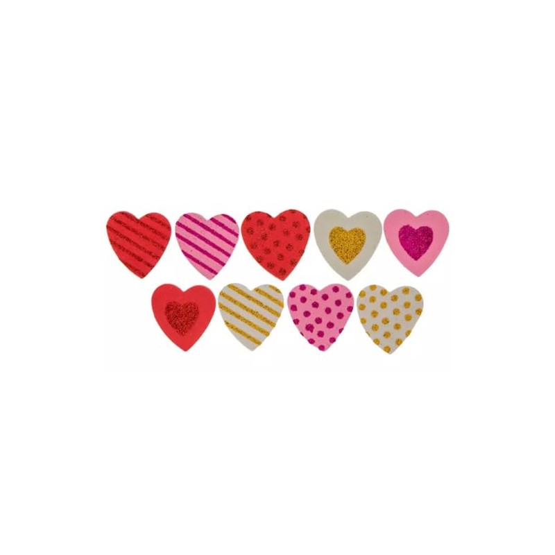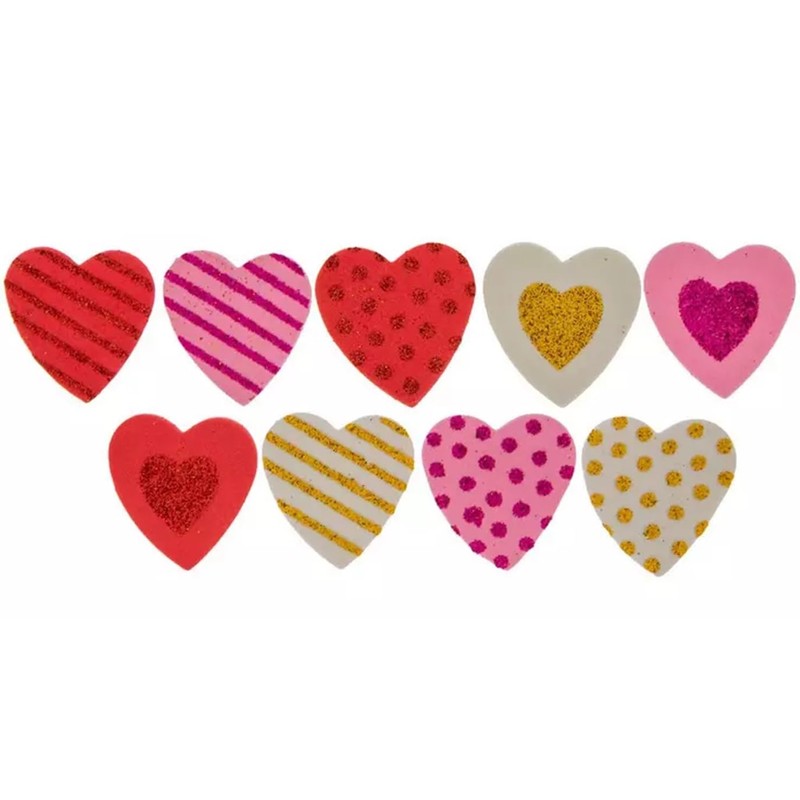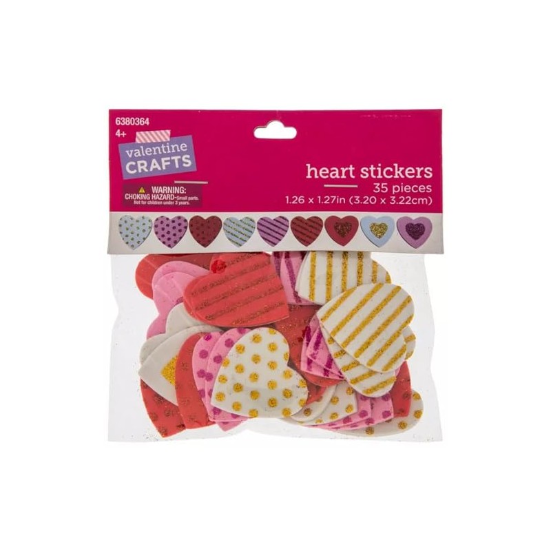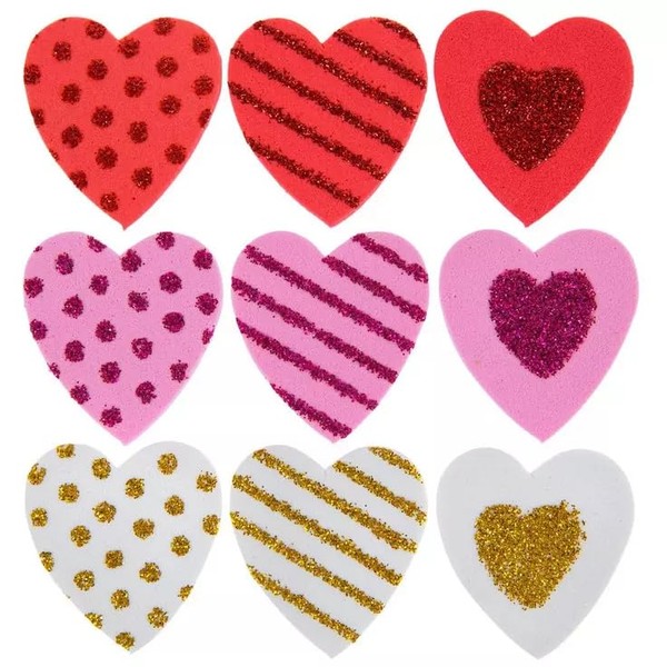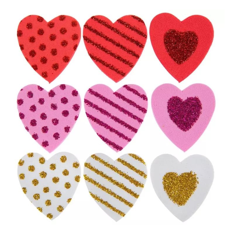 Foam Heart Stickers - Valentines Crafts - Texture Dots Stripes Glitter - 35 Pieces