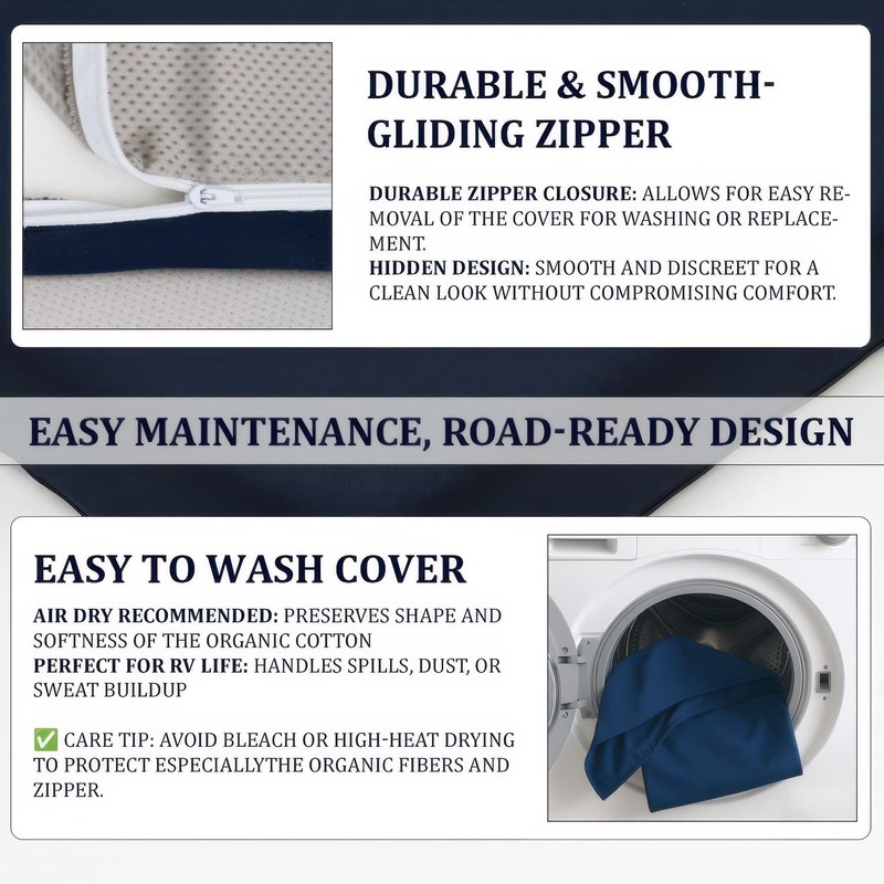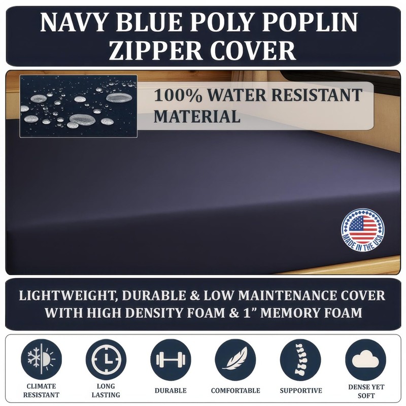 • WATER RESISTANT COVER - Cover is made from navy blue 600 dinier polyester fabric which will resist water and other fluids from causing damage to the mattress. Cover also comes with a zipper which makes it easy to remove and is machine washable