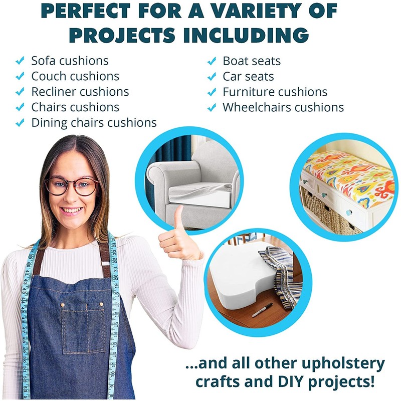 • DURABLE HIGH DENSITY FOAM: Our firm high density foam is long lasting and ideal for furniture that gets a lot of wear and tear. With a density of 1.8 our foam is extra tough yet comfortable while still affordable. Our upholstery foams last 7-10 years