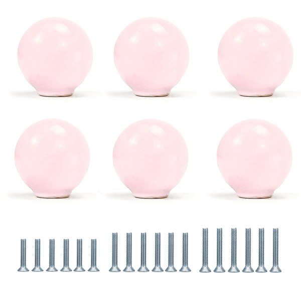 FOAN Cabinet Knobs 6 Pack, Ceramic Drawer Grip Handle, Suitable for Cupboard/Drawer/Dresser/Toilet/Kids Room, 1-1/4inch, Equipped with Multi Size Screws, Pink