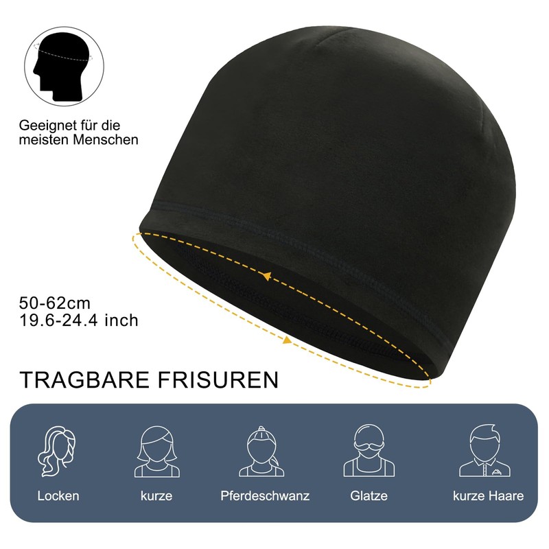 - COMFORTABLE & ELASTIC DESIGN The running hat with cold protection has an elastic design and is suitable for head circumference of 54-64 cm. It is lightweight and comfortable and does not burden. The comfortable elasticity of the running hat adapts to the head and ensures high wearing comfort, so you do not feel pressure even during prolonged wear.