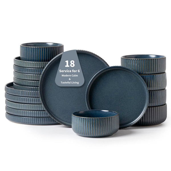 FOBENTA Dinnerware Sets for 6,18 Piece Starry Blue Plates and Bowls Set,Elegant Ceramic Dish Set for Relaxed Dining, Giftable and Dishwasher Safe