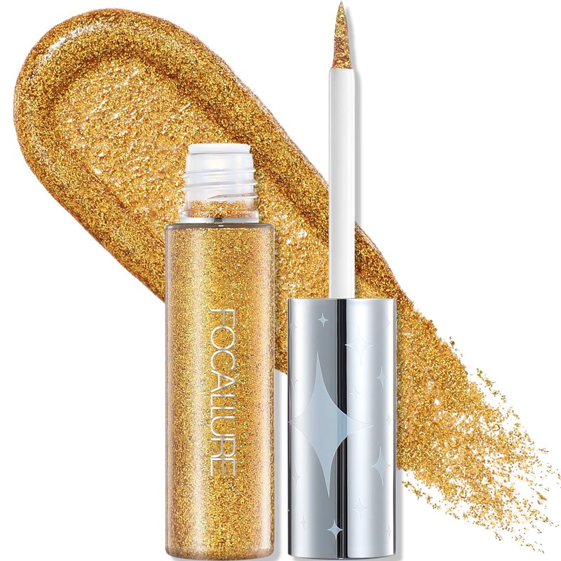 FOCALLURE Unearthing Mars Glitter Eyeliner, Waterproof Liquid Eyeliner Pencil, Smudge Resistant, Sparkling Finish, Quick Drying, GD04