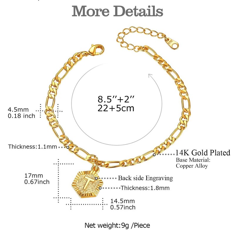 - 💛The initial anklet is well plated with 14k gold, and it will keep its color for at least one year.The gold anklet with initial is a great decoration for you when you are going to party, prom,vocation, street, etc. Also you can wear it in water.