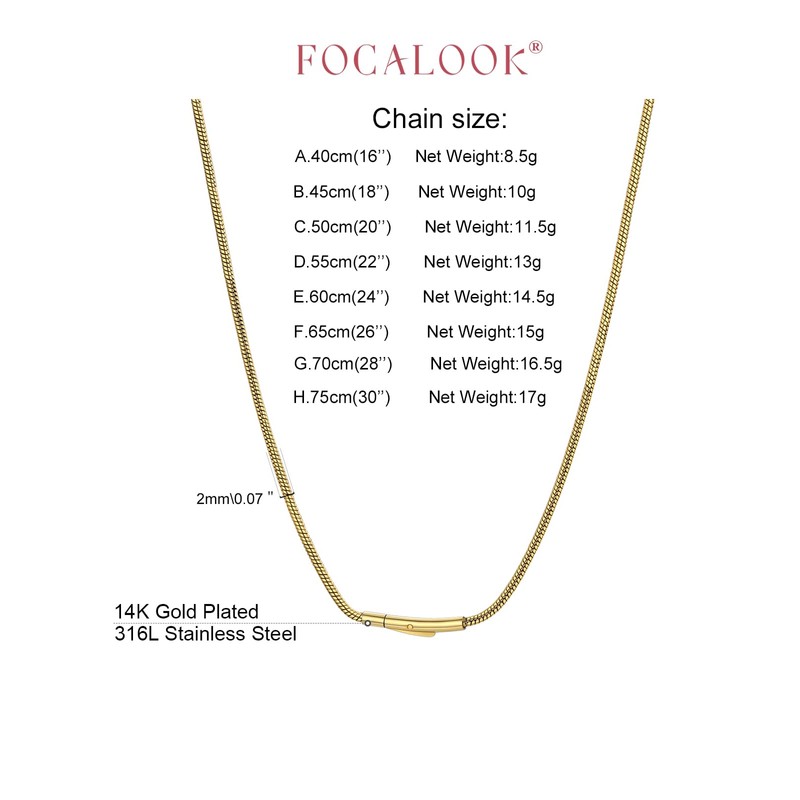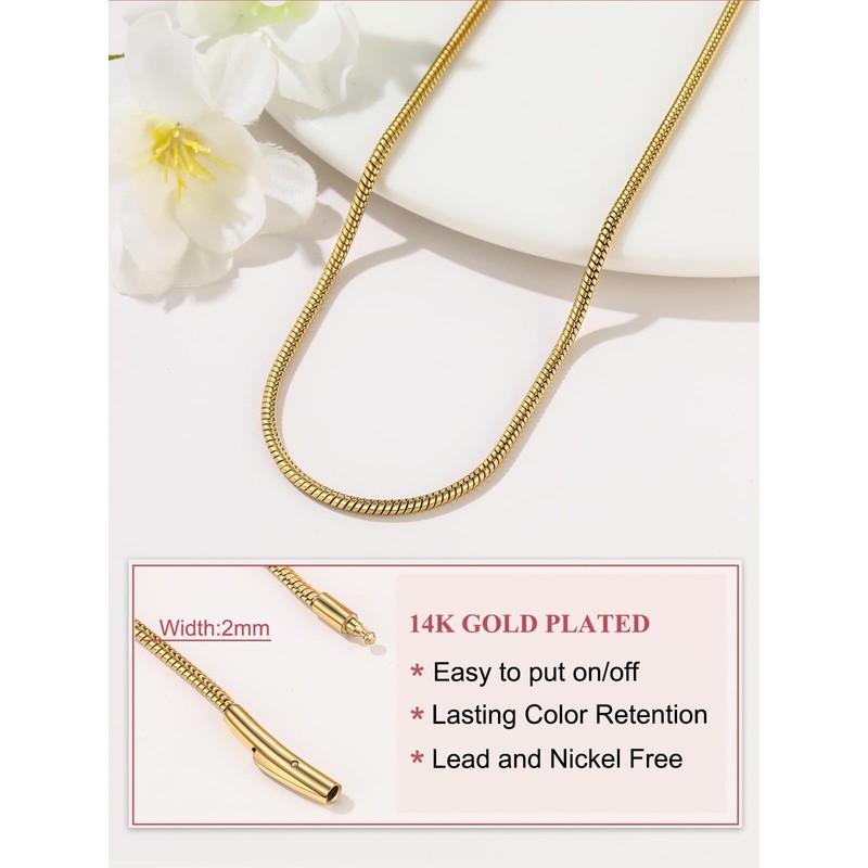 - Round Snake Chain Necklace for Men Women: 2mm 30inch stainless steel gold plated snake chain necklace, as chain only, also suit for men's women's pendant. There are many choices for length and color. Must be a size for you.