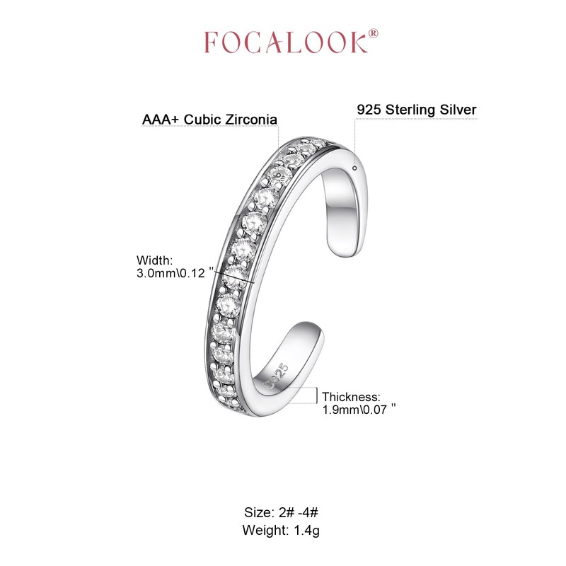 FOCALOOK Toe Rings for Women Sterling Silver Summer Jewellery 3mm Open Adjustable Sparkly Party Cubic Zirconia Clear Crystal Thumb Ring Knuckle Ring Foot Ring