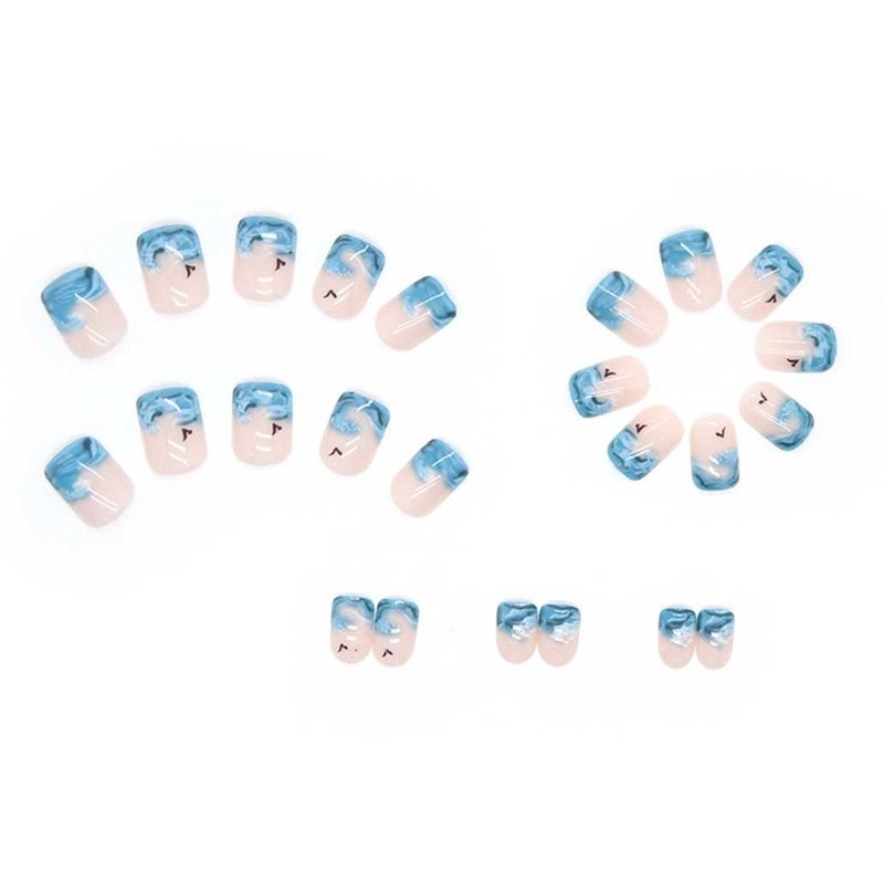 - Easy to Use:Blue fake nails with glue strcker can get your favorite manicure in just 5 minutes without waiting at the nail salon. Some simple steps allow you to get the same impressive professional effect at home.