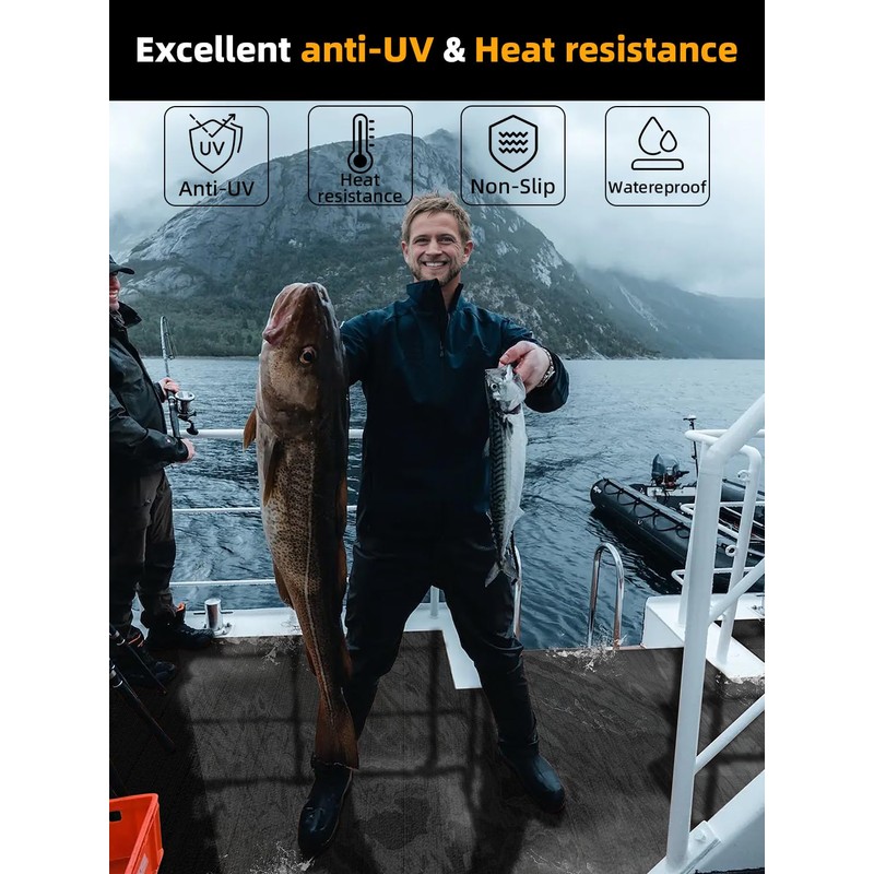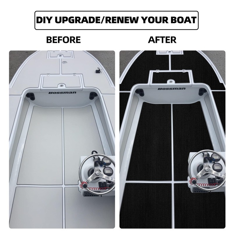 - High Quality EVA Foam - FOCEAN Boat flooring uses high-quality EVA(Ethylene-vinyl Acetate) material, Not easy deformation; High tensile elongation; Not easy to tear or damage; Not easy to fade; High density. Maintain a constant temperature, not easy to absorb heat; Odorless, non-toxic. Strong glue at the back(Extra with super glue), Non-Slip Self-Adhesive. Hardness: 55 (±1P)