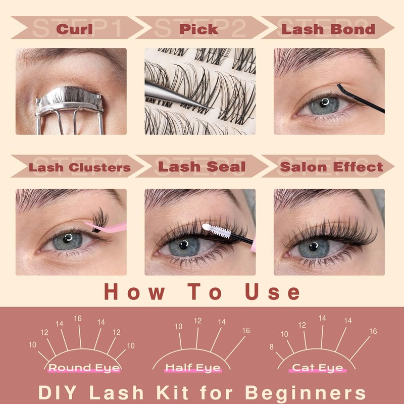 - DIY lashes clusters for Beginners: The product revolutionizes the eyelash clusters process by enabling users to achieve salon-quality results at home. With an easy-to-follow, 1 minute application process the clusters facilitate a stunning transformation for beauty enthusiasts of all skill levels