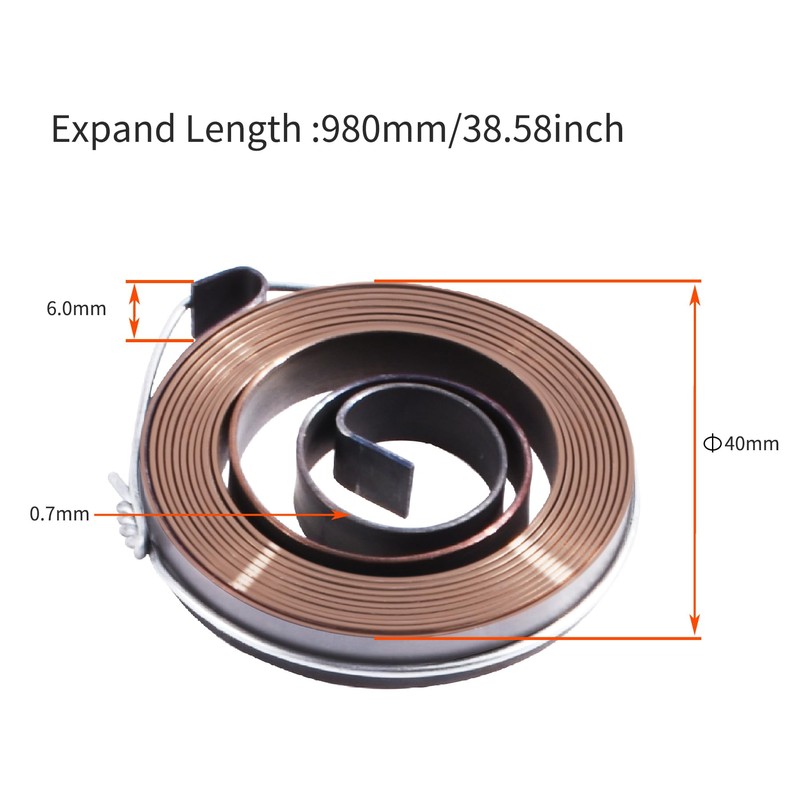 - Size:Drill press spring OD:1.57inch/40mm;Thickness:0.03inch/0.7mm;Width:0.24inch/6mm;Length:38.58inch/980mm.Outer installation type:Hook;Inner installation type:HOOK