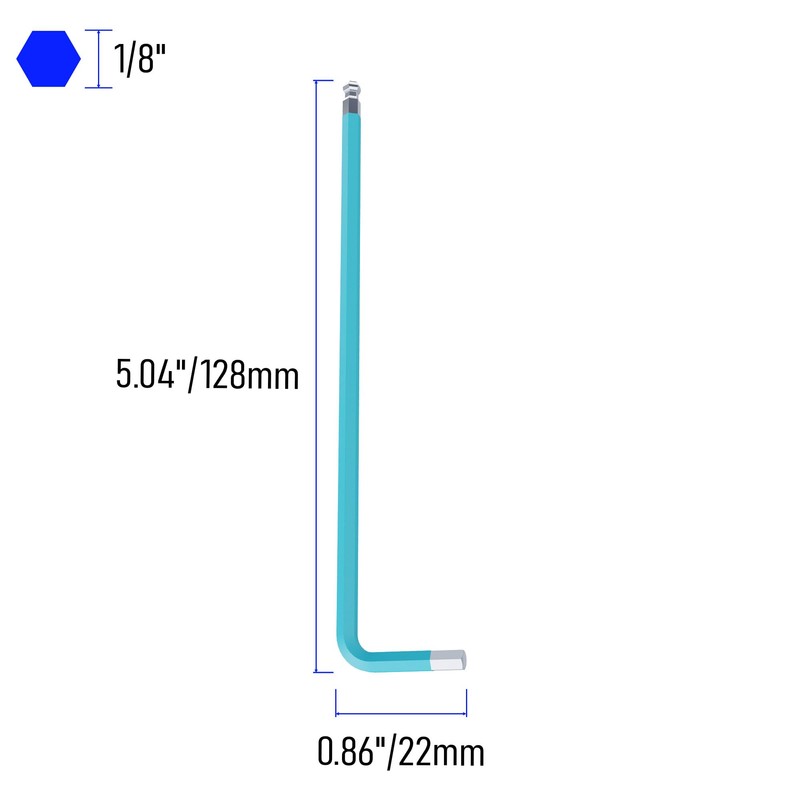 FOCMKEAS 2PCS 1/8" Ball End Hex Key Allen Wrench, SAE Internal Hexagonal Wrench, L Shaped Long Arm S2 Steel Repairing Tool,Pale Blue