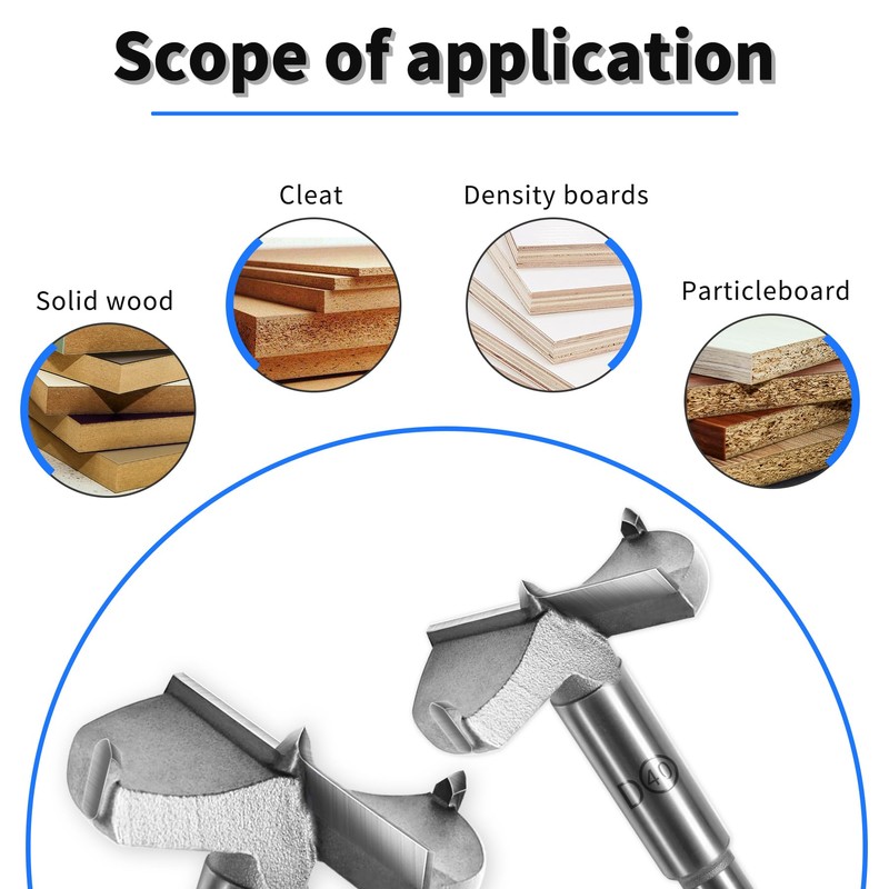 • 【Application】 The Woodworking Hole Saw can be used in combination with equipment such as drill presses, bench drills, CNC engraving machines, vertical drills, and vertical electric drills (please secure the drill bit firmly before use). Suitable for drilling operations on medium density fiberboard (MDF), plywood, solid wood panels, pressed panels, in drill presses, as well as on plastics, hard wood, rubber, etc; Widely used in the fields of wooden furniture, plastic products, and door hinges.