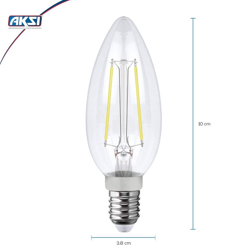 FOCO LED AKSI Filamentos VELA, Equivalente a 25W (220 lm - Lúmenes), Consume 2W (vatios), LUZ CÁLIDA 2700K, E12 - Pack de 6