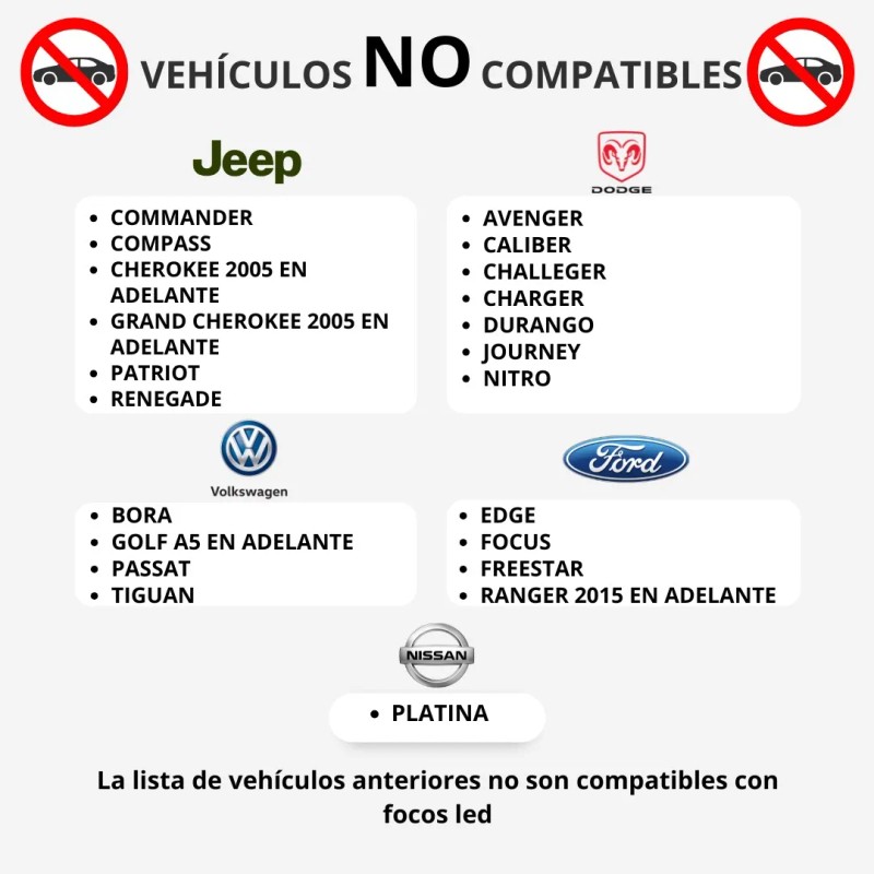 -Solo luz alta, solo luz baja o solo luz de niebla: H1, H3, H7, H8/H9/H11, 9005, 9006, 5202, 880.