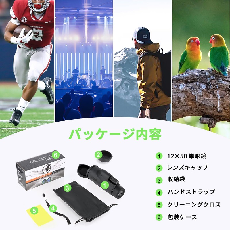 - 【Package Includes】1 x FOCUHUNTER 12x50 Monocular Telescope, 1 x Color Box, 1 x User Manual, 1 x Lens Cleaning Cloth, 1 x Cloth Bag, 1 x Carrying Rope, 1 x Eyepiece Cover, 1 x Objective Lens Cover If you have any questions or concerns about our telescope, please feel free to contact us