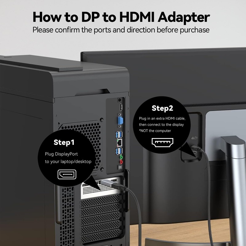 - 【Plug & Play Multi-Screen Setup】Instantly add HDMI ports to DP devices - no drivers needed! Connect two adapters for extended dual-screen productivity. Simple setup: DP source → Adapter → HDMI display.