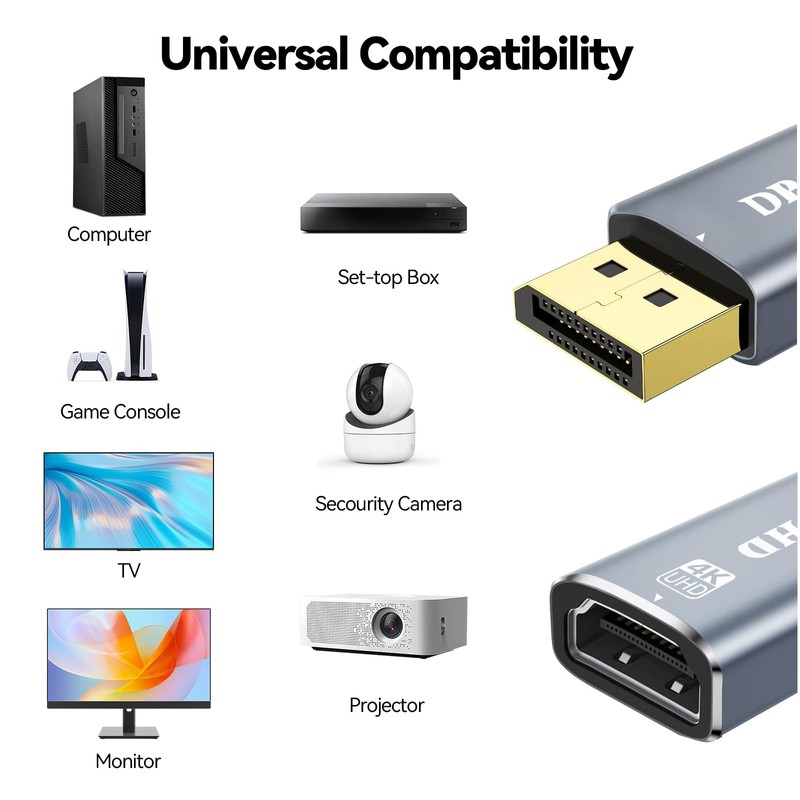 - 【4K Dual-Mode Conversion】Seamlessly convert DisplayPort to HDMI signals with 4K@30Hz Ultra HD clarity and 7.1/5.1 surround sound. Perfect for gaming, movies, or presentations on HDMI monitors/TVs. Unidirectional only (DP→HDMI).