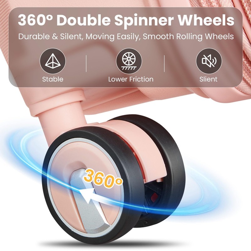 - Silent Suitcases with Spinner Wheels: Luggage with spinner wheels can help save your strength and make your suitcase lighter. Luggage moves very silent and smoothly with 360° rotate double wheels, which better than other singer wheel.