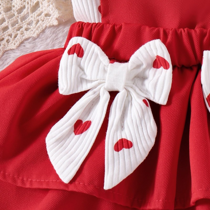 - 💖💕Best Baby Gifts For Girls: 1* Short sleeves love heart romper + 1* suspenders skirt + 1* bow headband, Please confirm the size before purchasing! Recommend hand washing or gentle machine washing, cold water, no bleaching.