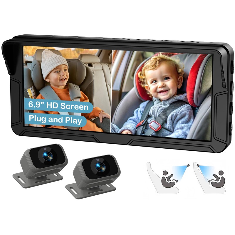 Fodkh Dual Baby Car Camera for 2 Kids – 6.9” Split-Screen HD Display, Infrare...