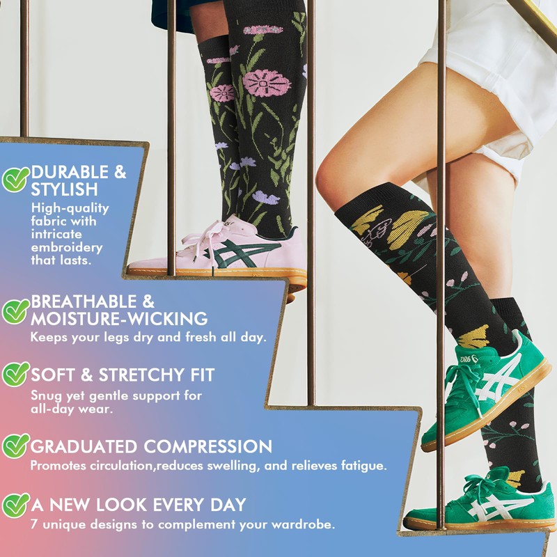 - ✅【Great Gift Ideas】:The fun compression socks are good for people from many different professions. Including nurses, doctors, pregnant women, teachers, office workers, cashiers, and grocery clerks and People who engage in long-term standing or sitting activities. Also is beneficial for exercisers like running, hiking, and yoga. These compression stockings for women 20-30 are the best gifts to give them.