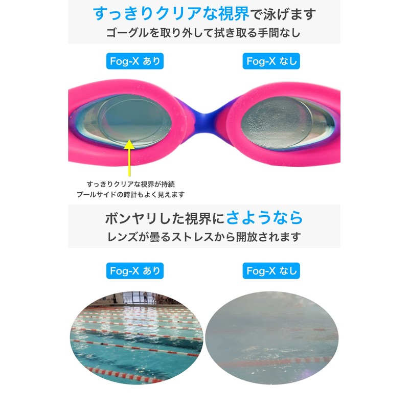 • (Free from overcast stress) You can release the stress of removing the fog goggles and wiping them off. You can swim in a clean mood with clear vision. Watch is also visible. Stop this when you remove the fog of your goggles with saliva as it can cause eye irritation. With Fog-X, you won't have to do that!