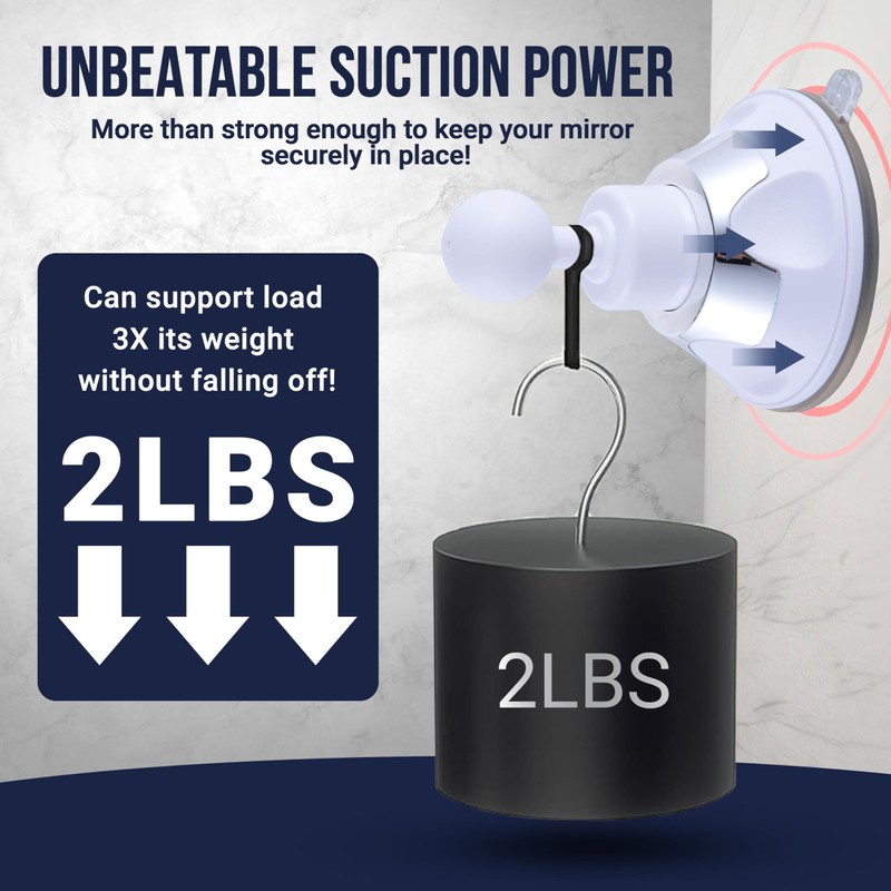 - #2 - UPGRADED SUCTION-CUP SO YOU CAN INSTALL IN SECONDS - Simply place the suction cup against any FLAT and NON-PORORUS surface like a bathroom mirror or smooth granite countertop to lock suction in place. Also compatible with other smooth and flat surfaces like enamel, marble, acrylic, glass, ceramic and porcelain.