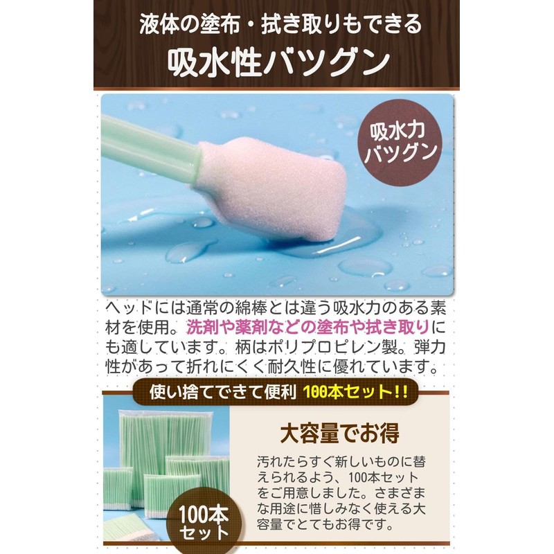 • 【吸水性バツグン】ヘッドには通常の綿棒とは違う吸水力のある素材を使用。洗剤や薬剤などの塗布や拭き取りにも適しています。柄はポリプロピレン製。弾力性があって折れにくく耐久性に優れています。