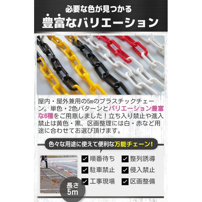 • (Wide Variety of Variations) 16.4 ft (5 m) plastic chain for indoor and outdoor use. Available in 6 different types of solid and 2 color patterns. You can choose between it according to your purposes, such as yellow, black, and white or red when you want to organize your parcel or prohibited from standing or getting in the way