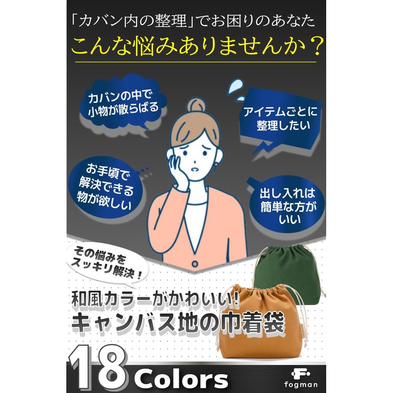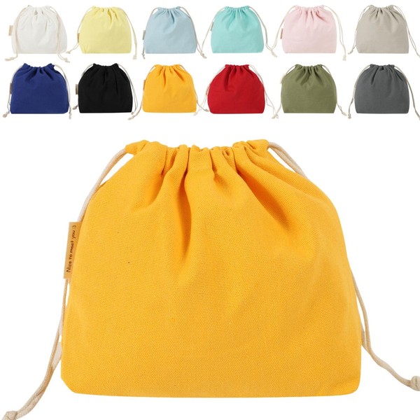fogman Drawstring Bag, Canvas, Solid, Stylish, Cute, Large, Small, Pastel Colors, Japanese Colors (M, Yamabukiiro)