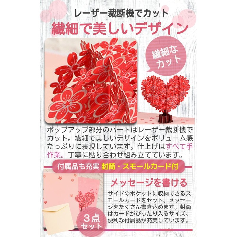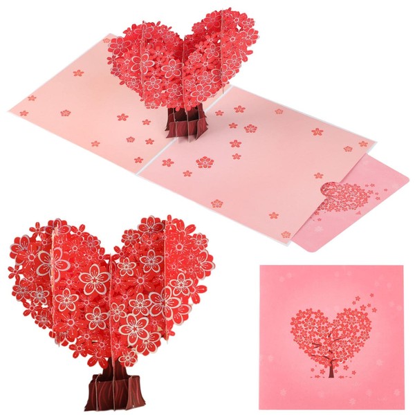 - Product Features: Heart pops out: Cute pop up design with cherry blossom motif. Delicate design: Delicate cut with a laser cutting machine. Decorate your room: Decorate and accent your decor. Complete 3-piece set: Includes envelopes and message cards