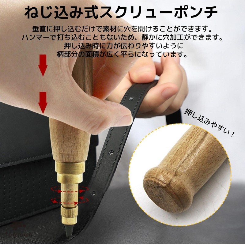 fogman Leather Craft Drill Screw Punch Tool Silent Leather Cloth Tool Set of 6 Sizes