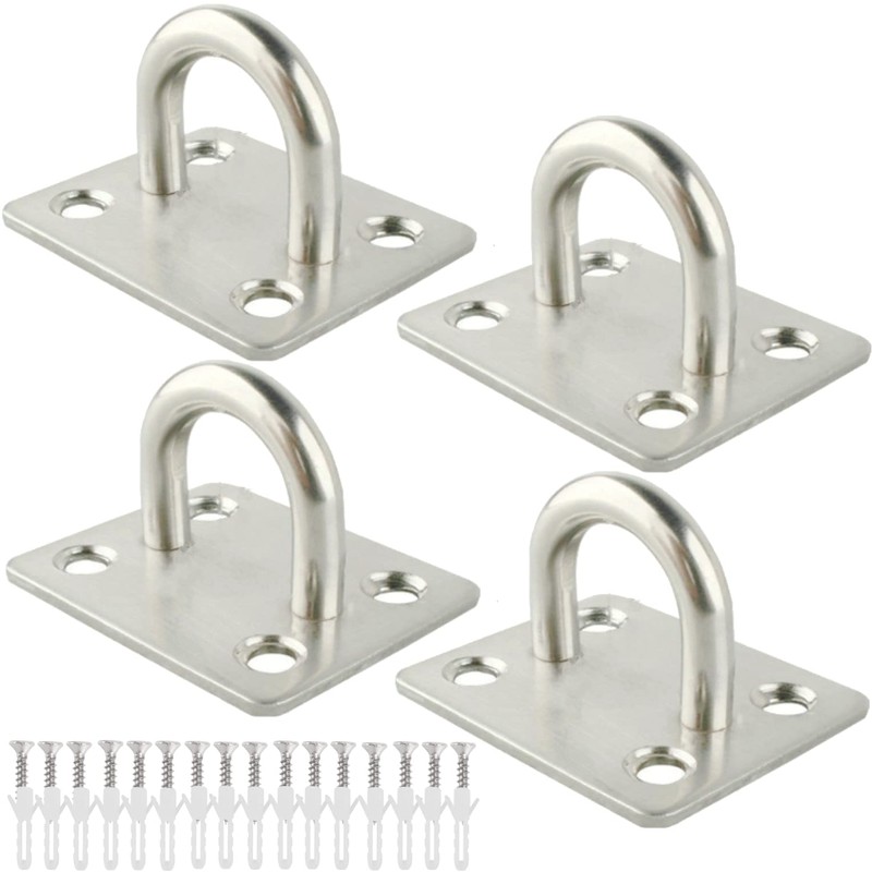 fogman Pad Eye Plate Ceiling Hook Stainless Steel U Shape Hammock with Screws Set of 4