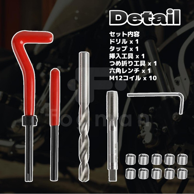 - Details: Set Contents: Drill x 1, Tap x 1, Insert Tool x 1, Refill Tool x 1, Hex Wrench x 1, Coil x M6, M8, M10, M12 is 20)