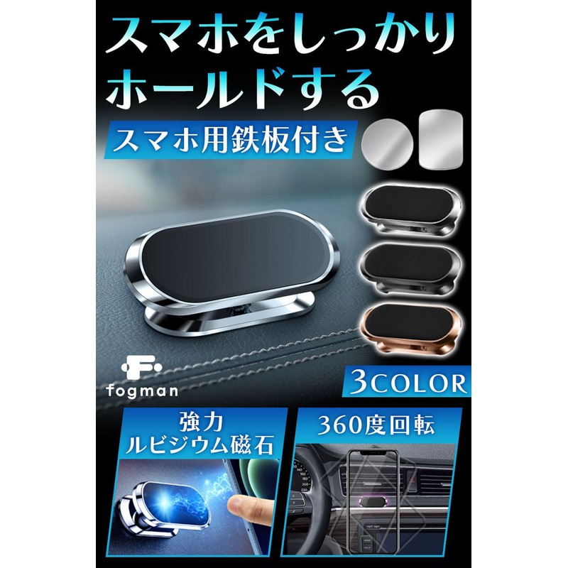 fogman Smartphone Holder, Car Holder, Magnet, Strong, Stylish, Cute, Magnet, Black