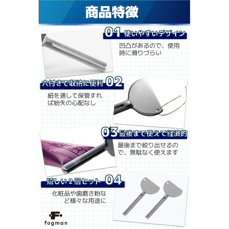 fogman Tube Squeezer, Tube Pressor, Stainless Steel, Toothpaste, Easy to Use, Cosmetics, Set of 2