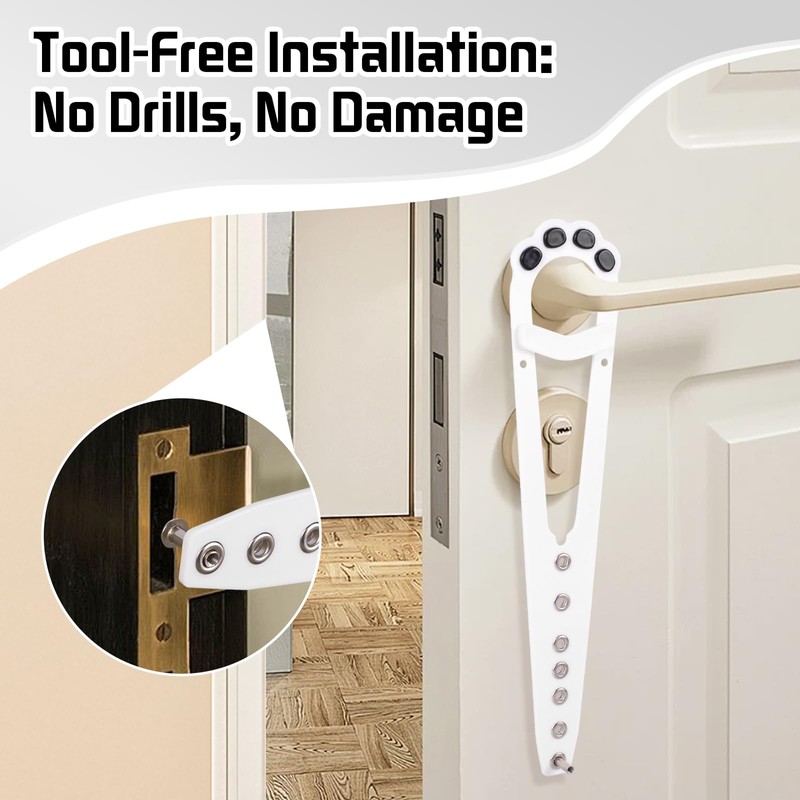 - Damage-Free, No Tools Required: Cat door stopper install in seconds without drilling. Just hook over most door handles or knobs—ideal for renters, apartments, and temporary setups.