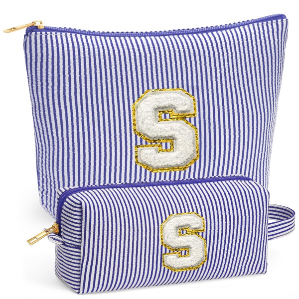 Fohufo Travel Cute Makeup Bag Set - Make up Cosmetic Bag for Women, Small Makeup Bag for Purse Makeup Kit | Blue Stuff Birthday Gifts for Women Travel Essentials, Blue Letter S