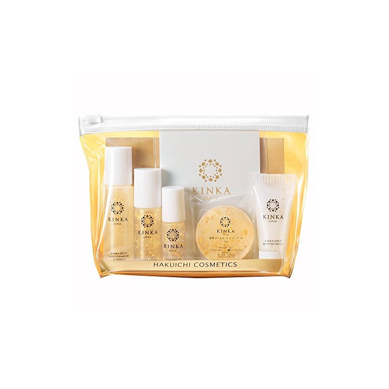 • Contents: Kinwa Gold, Nano Cleansing & Foam N, 0.5 fl oz (15 ml) / Kinwa Gold, Nano Soap N, 0.4 oz (10 ml) / Kinwa Gold, Nano Essence N, 1.6 fl oz (5 ml) / Kinka Gold, Moisture Cream N, 0.3 oz (8 g) / Gold Foil Hammered Paper "KINKA" 2.4 x 30 inches (60 mm)