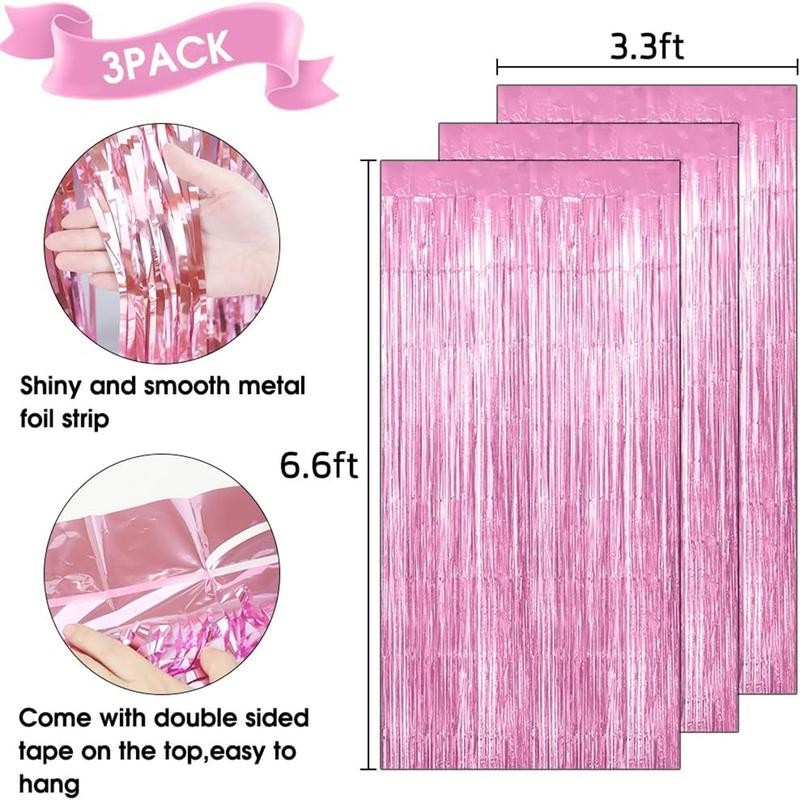 Foil Fringe Curtains, Blue Fringe Backdrop, 3 Pack 3.3x6.57ft Fringe Backdrop for Parties,Tinsel Curtain Backdrop, Foil Curtain Backdrop, Foil Curtain for Birthday Wedding Disco Decorations - Color: Pink