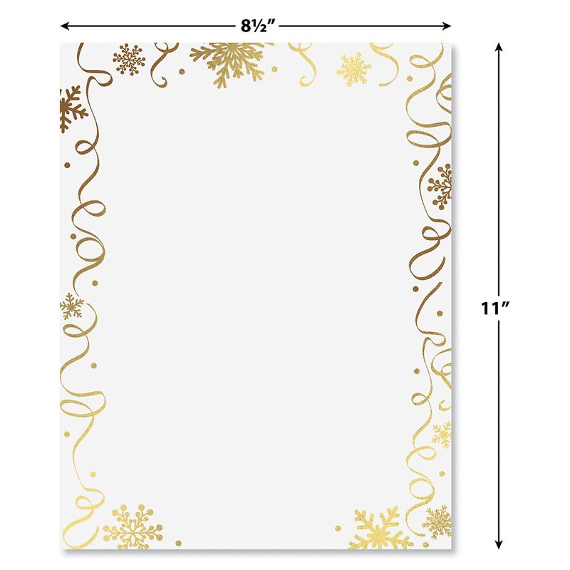 Foil Streamers & Snow Letter Papers - Set of 25, Stationery Papers, 8.5" x 11", Computer Paper, 70# Text Paper, Holiday, Christmas, Invitations, Newsletters…