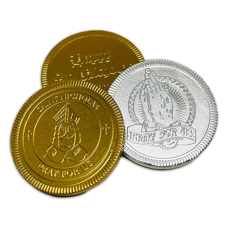 Foiled Again! Chocolate St. Nicholas Day Coins - Belgian Milk Chocolate Coins - Bright Colorful Foils - Beautiful Feast of St. Nicholas Designs - Sealed, Resealable Bag - 1 pound