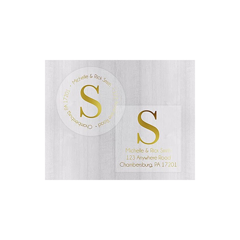 Foiled Return Address Label, Clear Transparent Initial Return Address Sticker, Round Return Address Label (#461-CF)