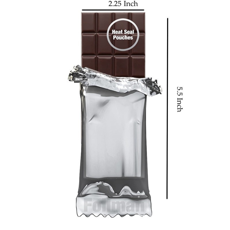 Foilman - Heat Seal Bags (Metallized) For Chocolate Bar Wrapping - Actual bags size 3 x 6 3/8 - Fits Bar Size 2.25 x 5.5 Inches (100 Pack) (Silver)