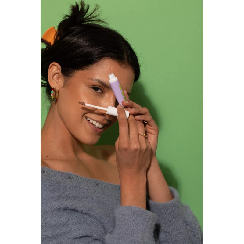 Aplicar una línea o puntos sobre la zona deseada o extraer el producto del tubo, tomarlo y extender con brocha, esponja o dedos.