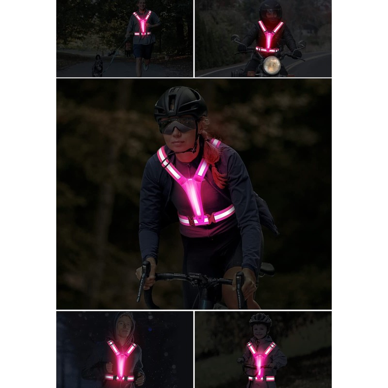Fokia Kunbio LED Reflective Running Vest Gear,Light Up Vest Runners Night Walking USB Rechargeable,Up to 11hrs Light with Adjustable Waist/Shoulder for Women Men Kids (Pink)